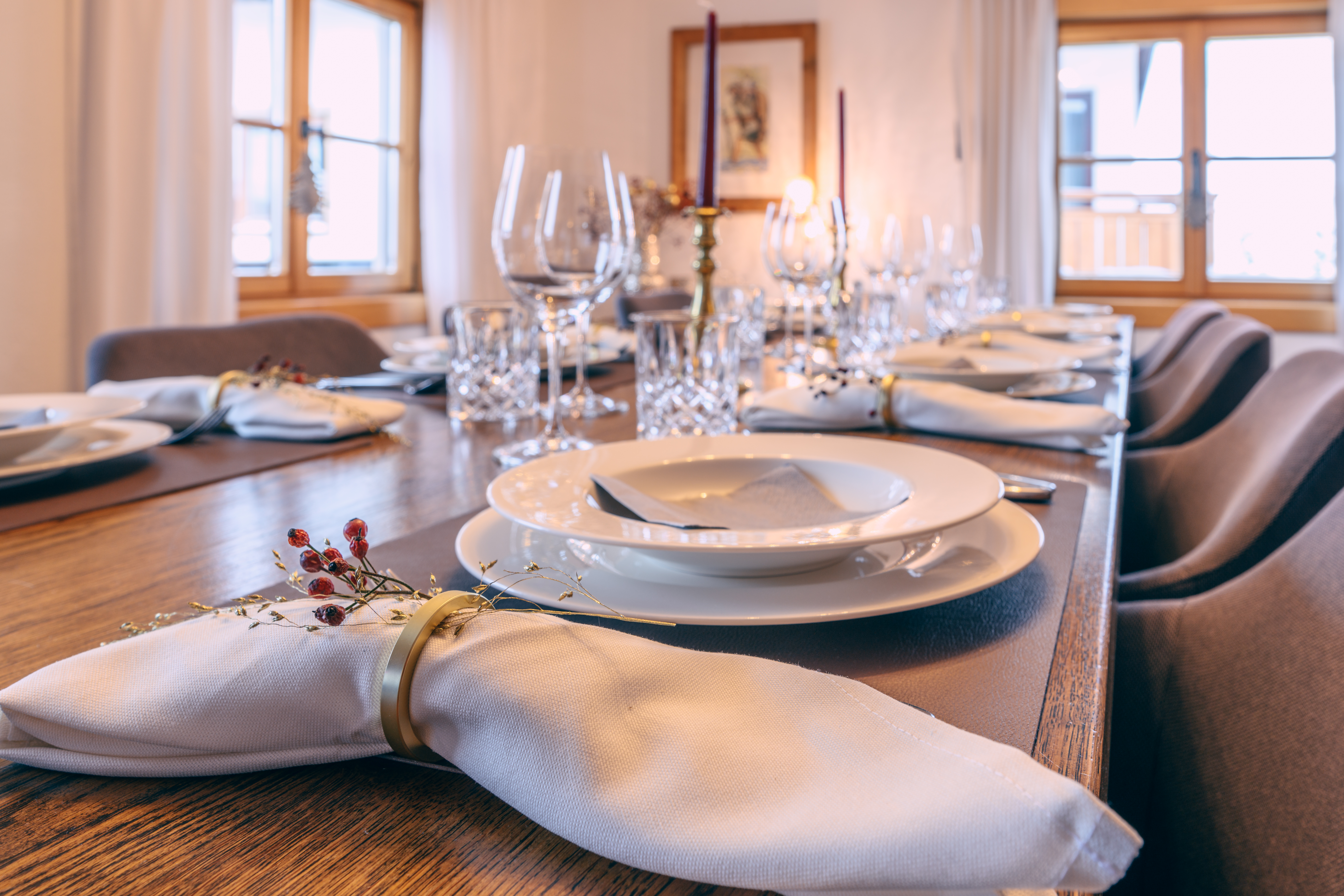 Gemeinsam genießen in der großen Küche und am Esstisch – perfekt für gesellige Abende.